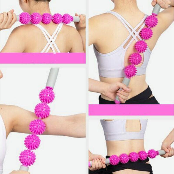 5 Ball Muscle Massage Relax Hedgehog Ball Yoga Stick Roller Stick(Green)