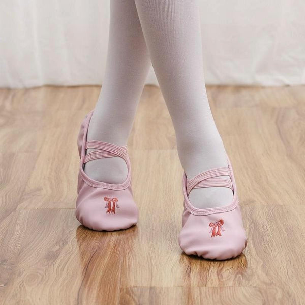 Crystal Satin Flower Decoration Dance Shoes Soft Sole Ballet Shoes Practice Dance Shoes For Children, Size: 34(PU Flesh Pink Bow)