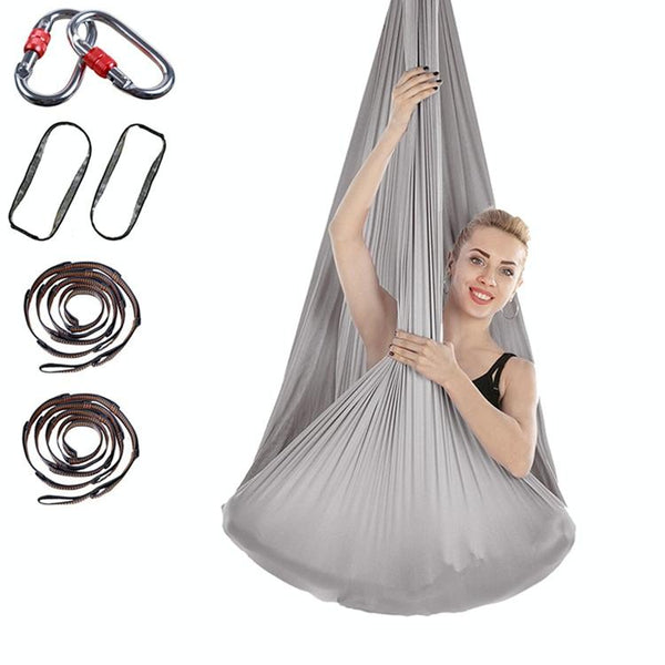 Indoor Anti-gravity Yoga Knot-free Aerial Yoga Hammock with Buckle / Extension Strap, Size: 400x280cm(Silver Grey)