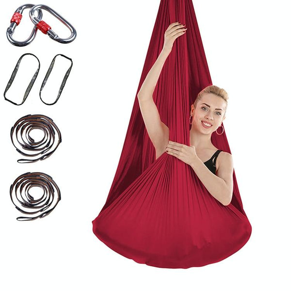 Indoor Anti-gravity Yoga Knot-free Aerial Yoga Hammock with Buckle / Extension Strap, Size: 400x280cm(Wine Red)