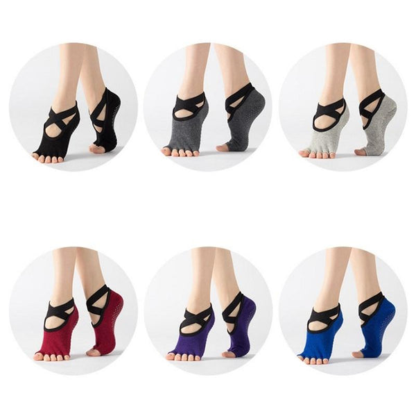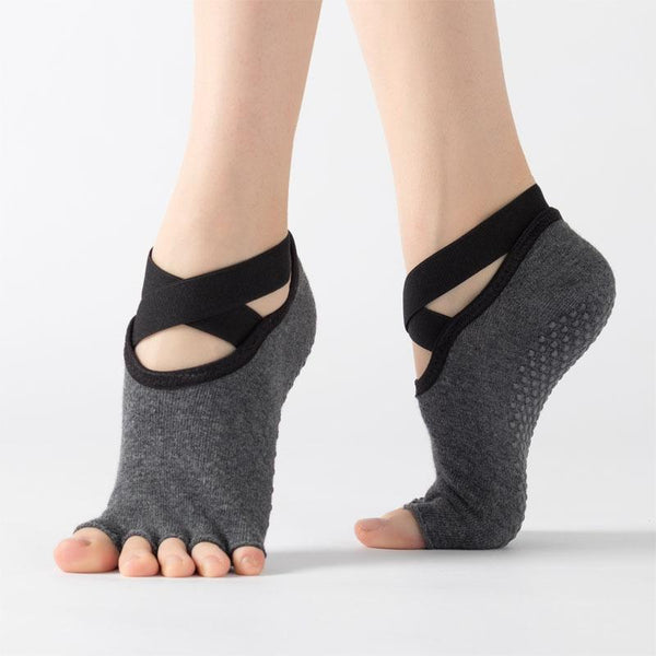 Lace Yoga Socks Non-Slip Five Finger Sports Cotton Socks Fashion Open Toe Dance Socks, Size: One Size(Dark Gray)