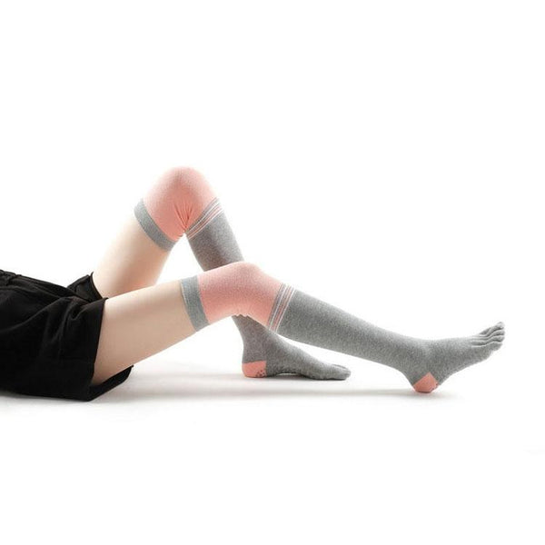 Ladies Over The Knee Yoga Socks Winter Warm Non-Slip Dance Five-Finger Socks, Size: Free Size( Striped Gray)