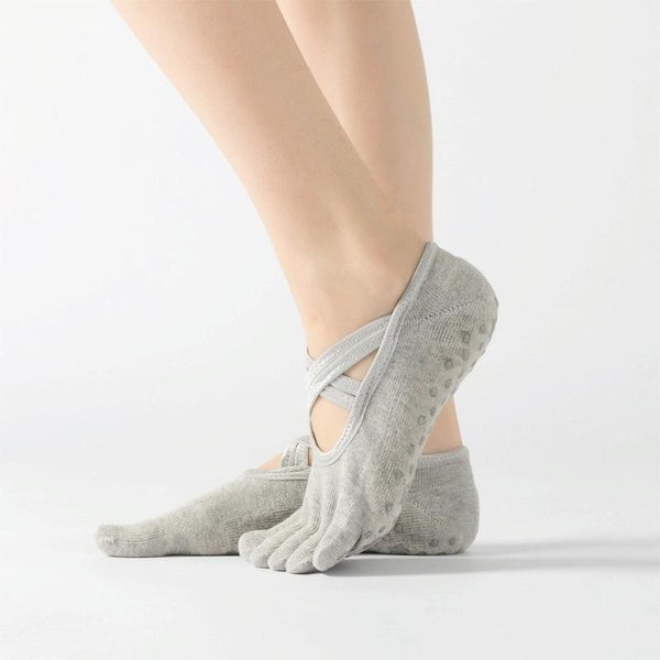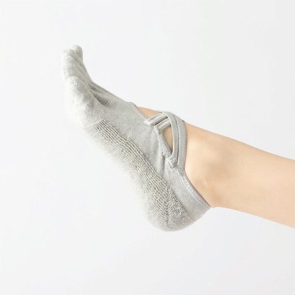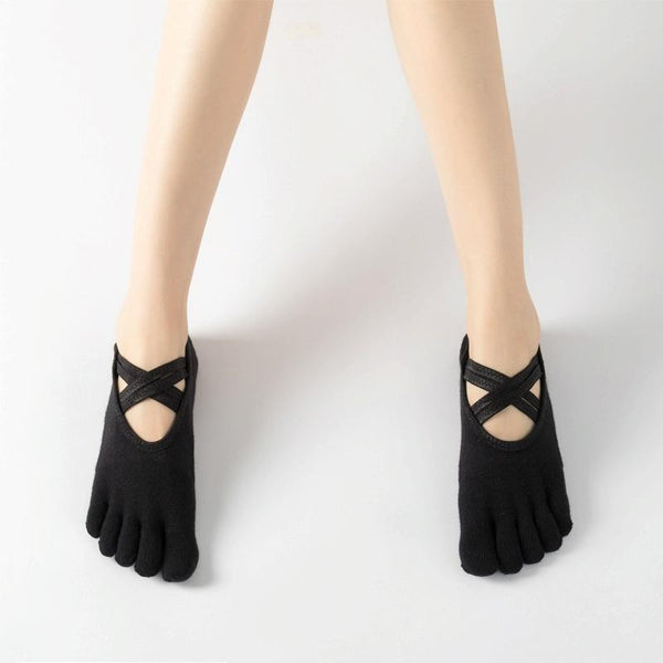 Terry Five-Finger Socks Cotton Thickened Warm and Non-Slip Yoga Socks Cross Strap Dance Socks, Size: One Size(Full Toe (Black))