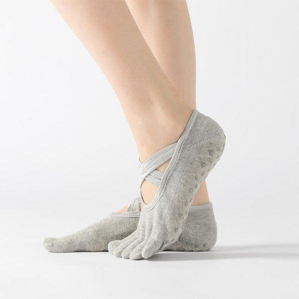 Terry Five-Finger Socks Cotton Thickened Warm and Non-Slip Yoga Socks Cross Strap Dance Socks, Size: One Size(Full Toe (Light Gray))