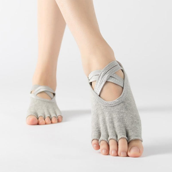 Terry Five-Finger Socks Cotton Thickened Warm and Non-Slip Yoga Socks Cross Strap Dance Socks, Size: One Size(Open Toe (Light Gray))