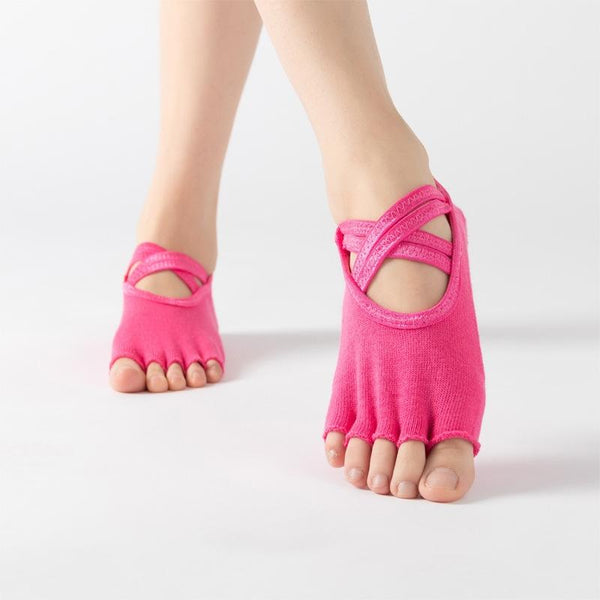 Terry Five-Finger Socks Cotton Thickened Warm and Non-Slip Yoga Socks Cross Strap Dance Socks, Size: One Size(Open Toe (Rose Red))