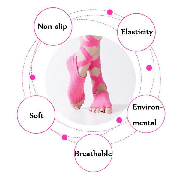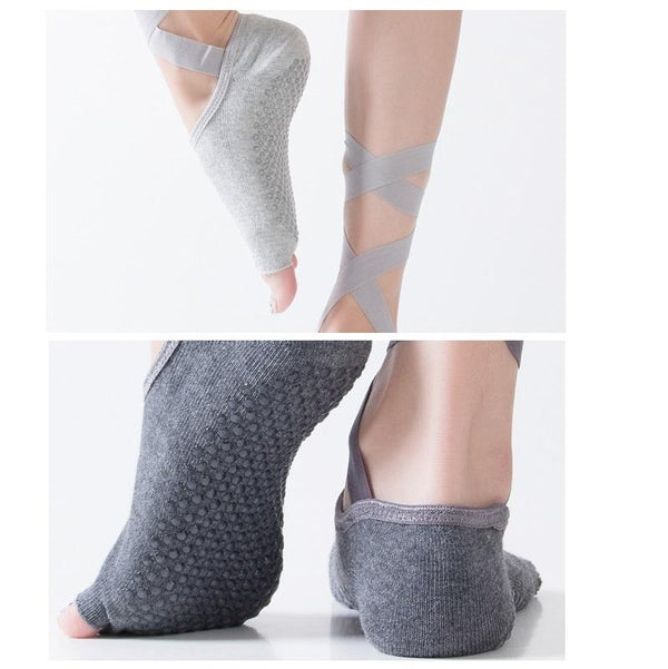 Yoga Five-Finger Socks Open-Toe Lace-Up Dance Socks Particle Non-Slip Socks, Size: One Size(Light Gray)