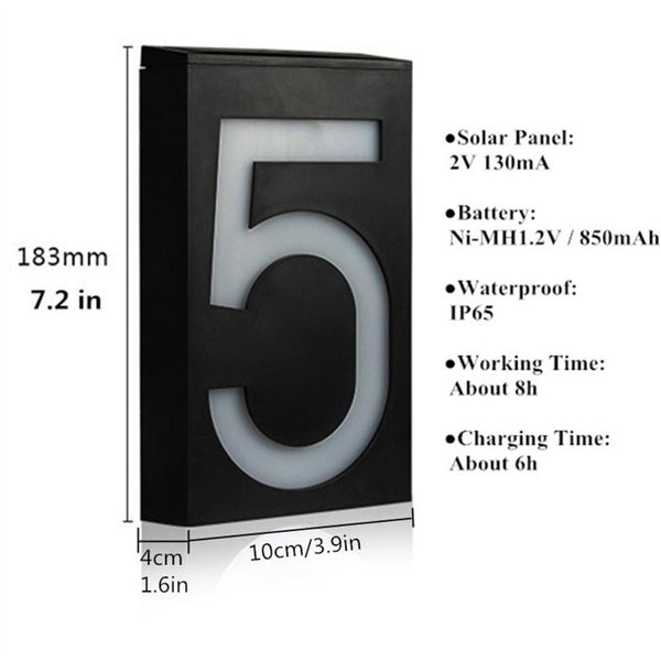 2. The environmentally friendly solar powered light charges in natural daylight and turns on automatically at dusk making your door number visible for visitors.
