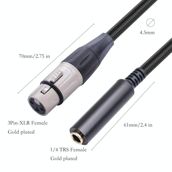 0.3m 6.35mm Female to XLR Female Microphone Audio Conversion Cable
