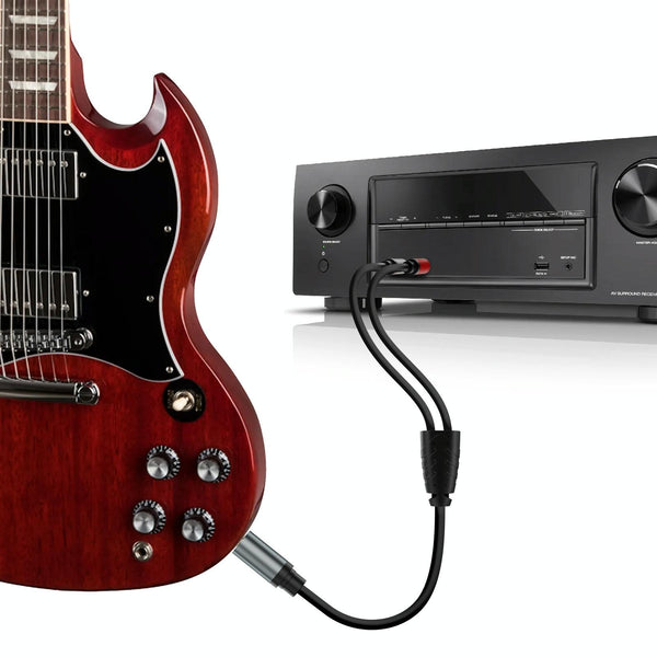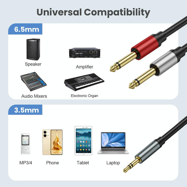 3. The audio connecting cable can provide quality connection between a laptop or PC with a 3.5mm jack output and an AV receiver, amplifier, mixer, Hi-Fi stereo sound system, home theater system, computer audio, recording equipment or speakers with dual 6.35mm jack input.