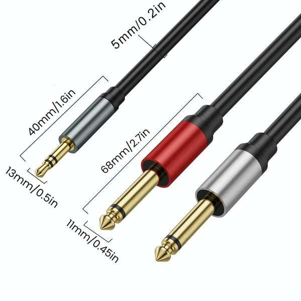 1. Metal shell, gold plated head, pure copper wire core, ultra-soft outer sheath, 3.5mm TRS dual-channel to dual 6.35mm TS mono female one-to-two Y-type audio adapter cable.