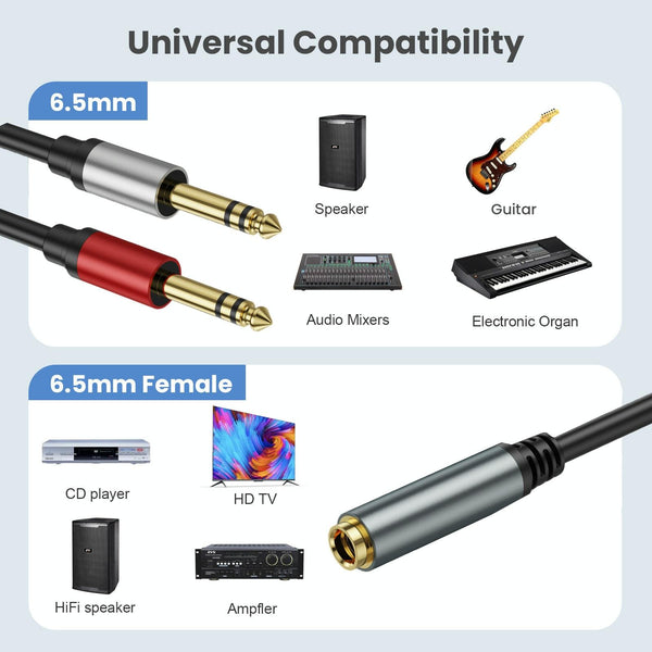 4. Applicable to: headphone adapter, compatible with most professional audio and home audio equipment, such as amplifiers, microphones, mixers, speakers, music keyboards, guitars, electric pianos, HiFi systems, home theater equipment, or AV receivers.