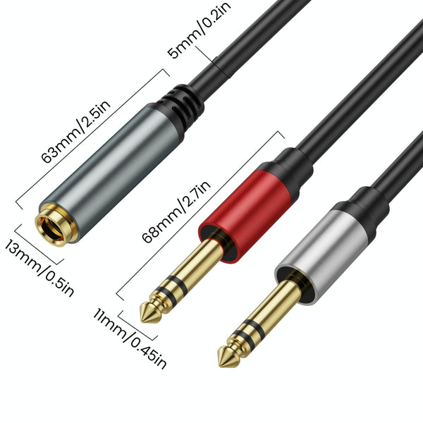 0.3m Gold Plated 6.35mm Female to 2 x 6.35mm Male Stereo Audio Adapter Y Splitter Cable(Black)