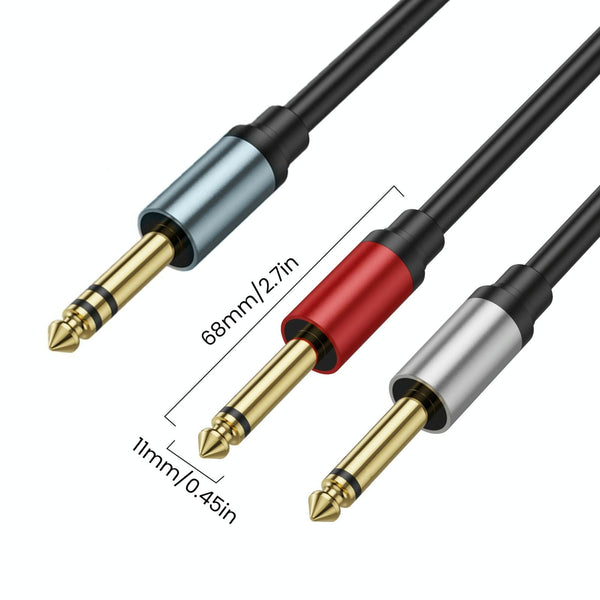 0.3m Gold Plated 6.35mm Male Dual Sound TRS Stereo to 2 x 6.35mm Male TS Mono Y Splitter Adapter Audio Cable(Black)