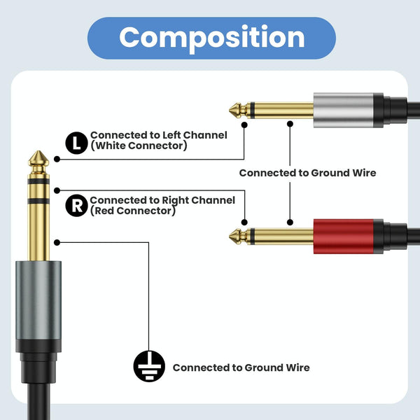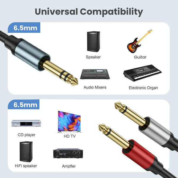 1. Pure copper gold-plated head metal shell 6.35mm dual-channel TRS stereo to 2 6.35mm mono MonoY-type audio cable