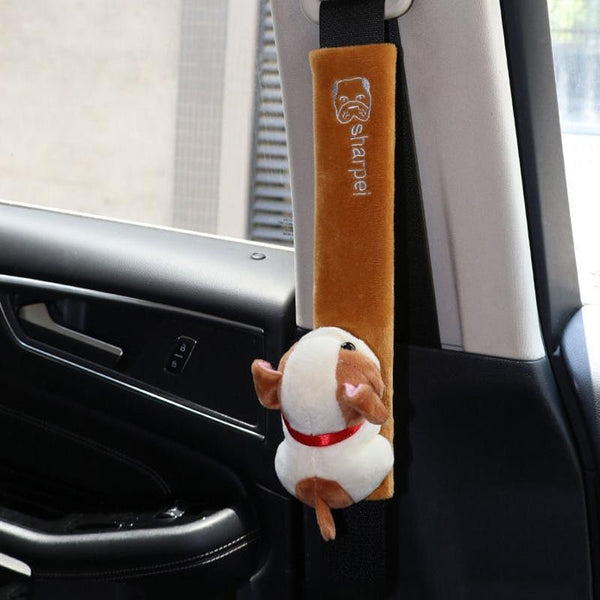 002 Cute Cartoon Thicked Seat Belt Anti-Strangled Protective Cushion, Length: 23cm (Brown Dog)