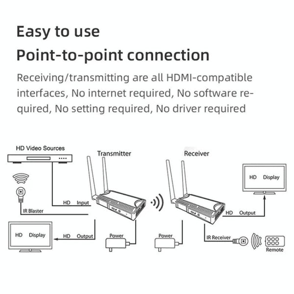 7.Plug and play: The set product (including TX+RX) has been paired before leaving the factory, and the product is plug and play. It needs to be paired with TX only after adding a new RX