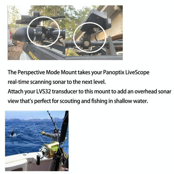 6. The perspective mode mount takes Panoptix Livescope real-time scanning sonar to the next level by mounting your LVS32 transducer to this mount for an increased overhead sonar view