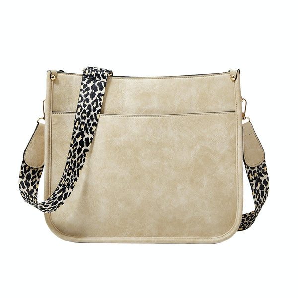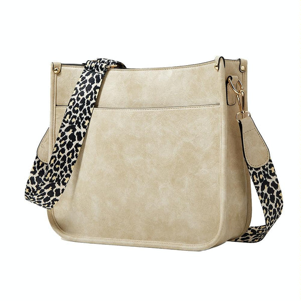 013 Leopard Strap PU Leather Single-shoulder Waterproof Crossbody Tote Bag(Beige)