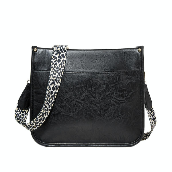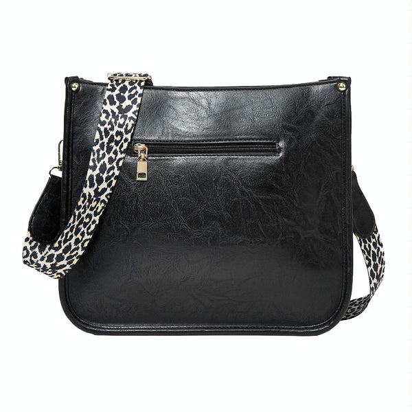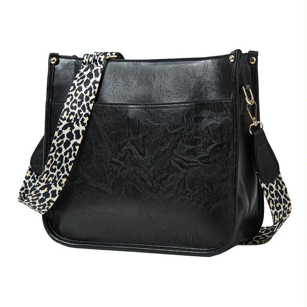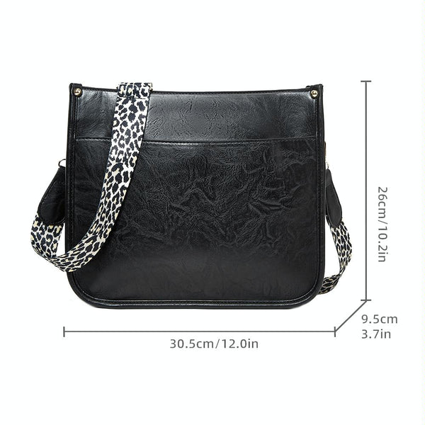 013 Leopard Strap PU Leather Single-shoulder Waterproof Crossbody Tote Bag(Black)