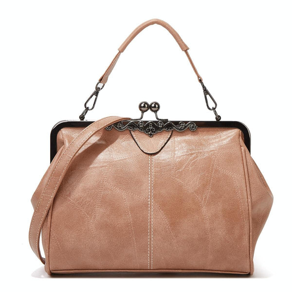 036 Vintage Buckle Handbags Leather Adjustable Crossbody Bag(Apricot)