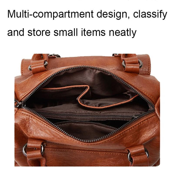 048 Pebbled Leather Multi-compartment Handbag Large Capacity Crossbody Shoulder Bag(Claret)