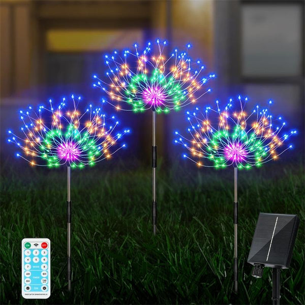 1 Drag 3 Color Light 360 LEDs Solar Fireworks Lamp Grass Globe Dandelion Flash String With Remote Control