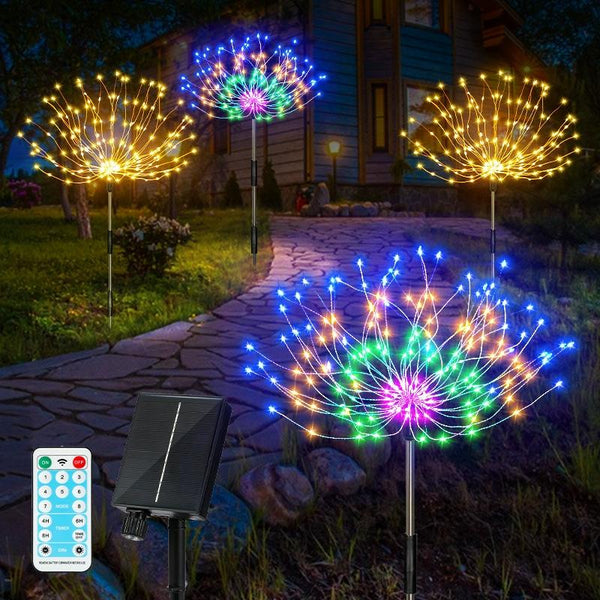 1 Drag 3 White Light 360 LEDs Solar Fireworks Lamp Grass Globe Dandelion Flash String With Remote Control
