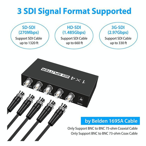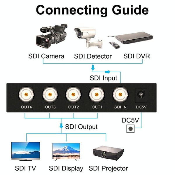1 In 4 Out SD-SDI / HD-SDI / 3G-SDI Distribution Amplifier Video SDI Splitter(EU Plug)