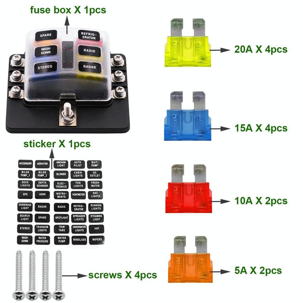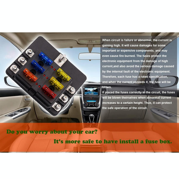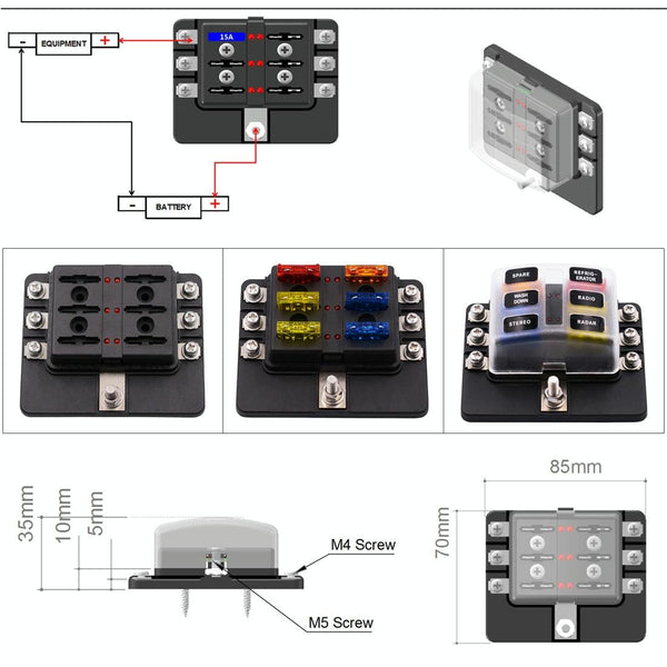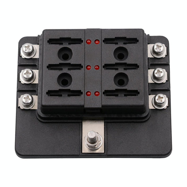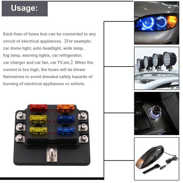 1 in 6 Out 6 Way Circuit Fuse Box Screw Terminal Section Fuse Holder Kits with LED Warning Indicator for Auto Car Truck Boat