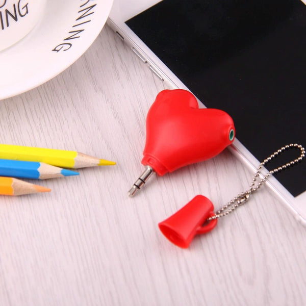 1 Male to 2 Females 3.5mm Jack Plug Multi-function Heart Shaped Earphone Audio Video Splitter Adapter with Key Chain for iPhone, iPad, iPod, Samsung, Xiaomi, HTC and Other 3.5 mm Audio Interface Electronic Digital Products(Red)