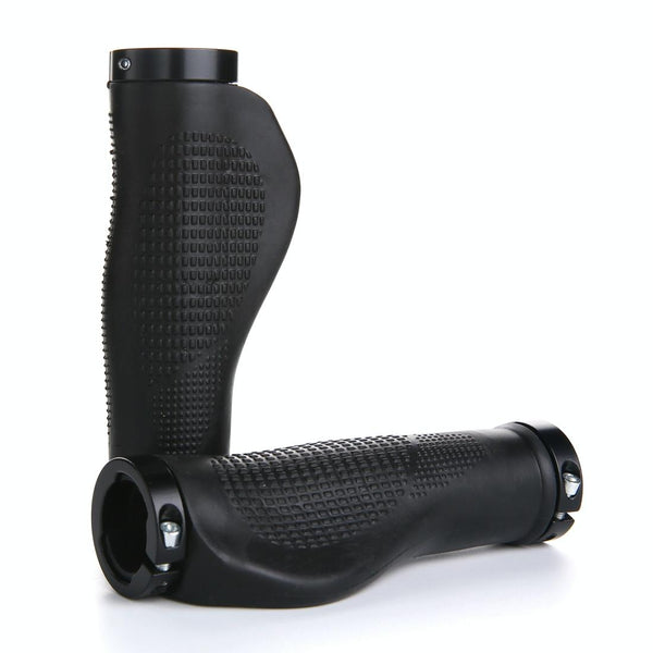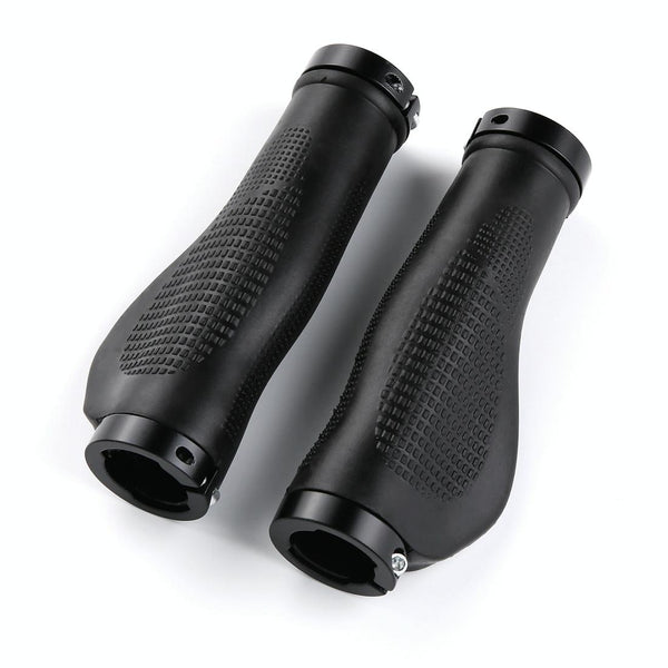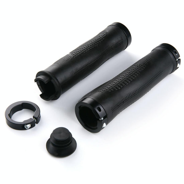 1 Pair AG21 Rubber +Alloy Lock-Rings Bicycle Flat Handlebar Grip(Black)