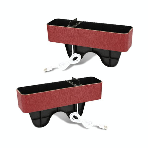 1 Pair Car Multi-functional Seat Crevice USB Storage Box(Wine Red)