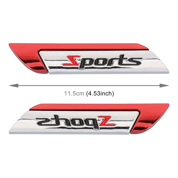 1 Pair Car SPORTS Personalized Aluminum Alloy Decorative Stickers, Size: 11.5 x 2.5 x 0.5cm (Red)