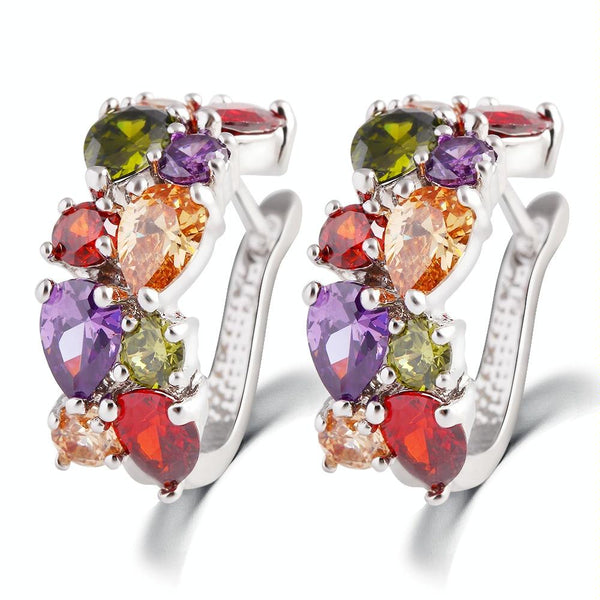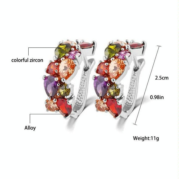 1 Pair Colorful Zircon Earrings Stud Jewelry For Women And Girls(Silver)