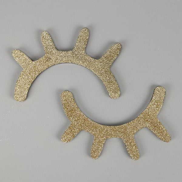 1 Pair Cute Wooden 3D Eyelash Wall Sticker Decor Bedroom Background Wall Sticker(Gold)