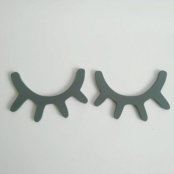 1 Pair Cute Wooden 3D Eyelash Wall Sticker Decor Bedroom Background Wall Sticker(Gray)