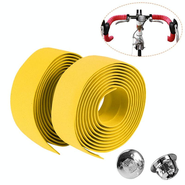 1 Pair Cycling Road Bike Sports Bicycle Cork Handlebar Tape Wrap + 2 Bar Plug(Yellow)