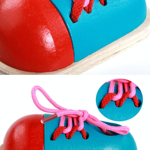 1 Pair Educational Kids Toys Wooden Shoelace Tying Practice Toy