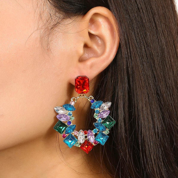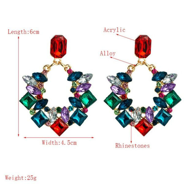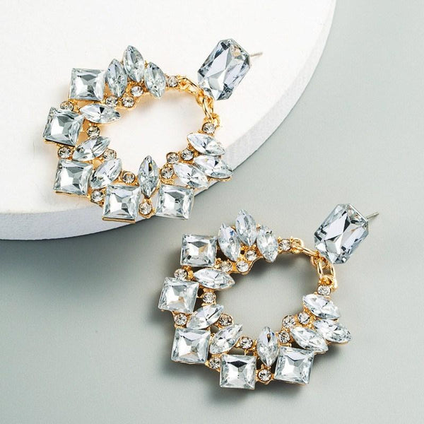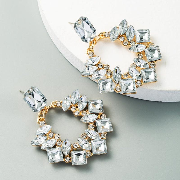 1 Pair Exaggerated Geometric Alloy Inlaid Rhinestone Earrings Female Flash Full Diamond Earrings(White)
