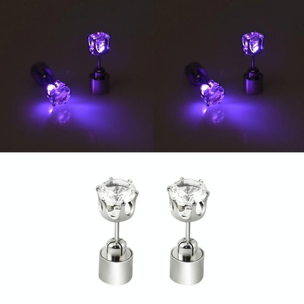 1 Pair Fashion LED Earrings Glowing Light Up Diamond Earring Stud(Purple)