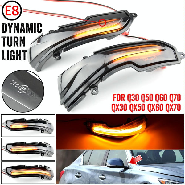 1 Pair For Infiniti Q30 2016-2019 Car Dynamic LED Turn Signal Light Rearview Mirror Flasher Water Blinker (Transparent Black)