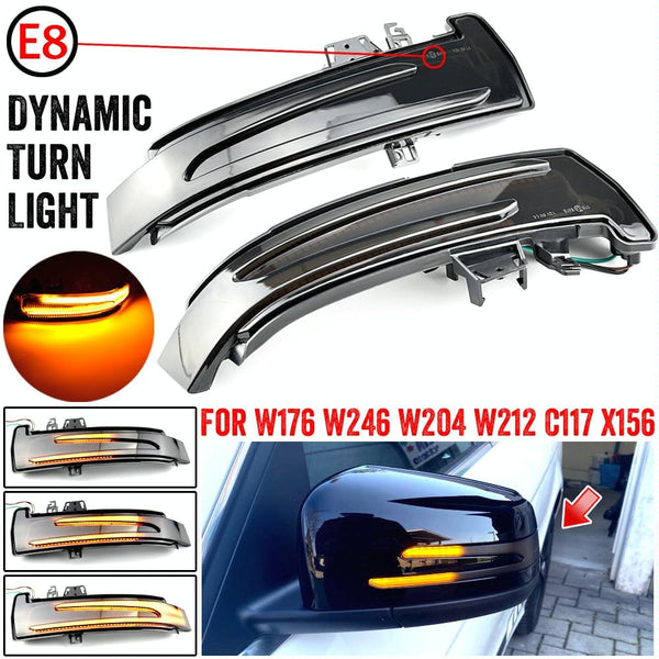 1 Pair For Mercedes-Benz A Class W176 2013-2017 Car Dynamic LED Turn Signal Light Rearview Mirror Flasher Water Blinker (Transparent Black)