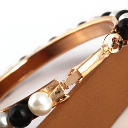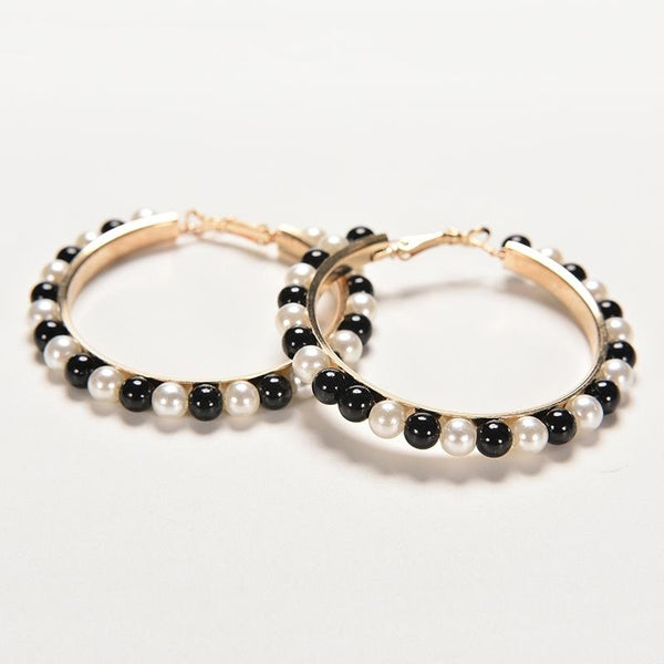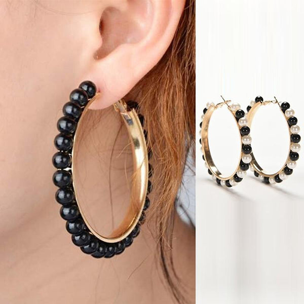 1 Pair Girls Hoop Pearl Earring With Big Circle(Black and White)