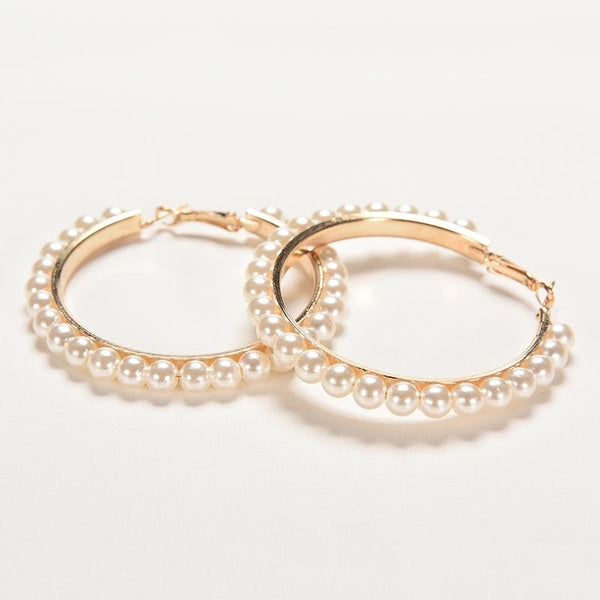1 Pair Girls Hoop Pearl Earring With Big Circle(White)