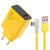 67W USB Fast Charger with 1m USB to Elbow Type-C Cable, Plug Type:EU Plug(Yellow)