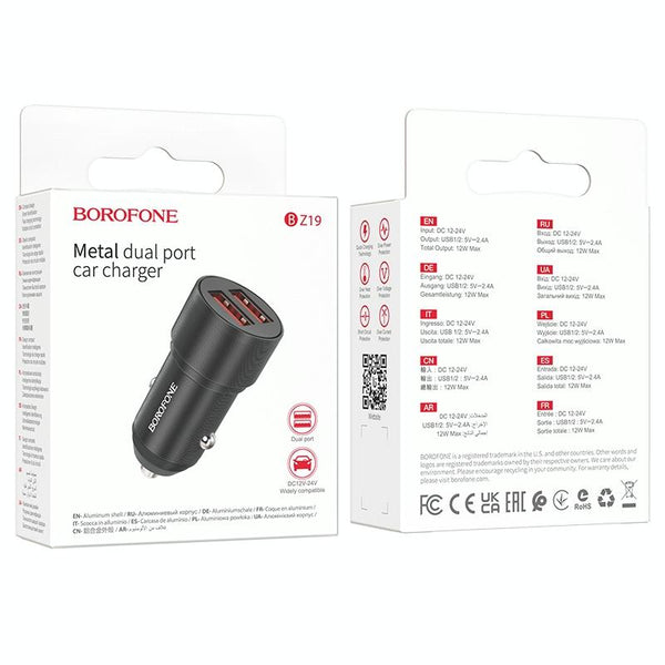 BOROFONE BZ19 Wisdom Dual USB Ports Car Charger(Black)