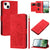 For iPhone 15 Tulips Embossed Leather Phone Case with Lanyard(Red)