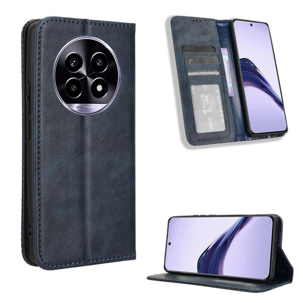 For Realme 13+ 5G Global Magnetic Buckle Retro Texture Leather Phone Case(Blue)