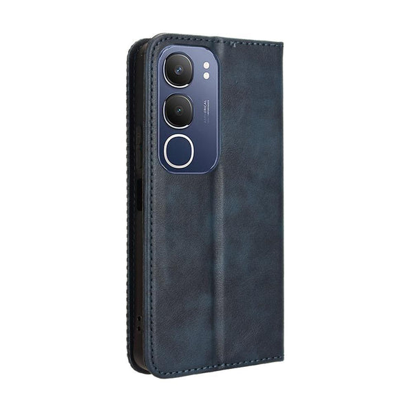 For vivo Y19s 4G Magnetic Buckle Retro Texture Leather Phone Case(Blue)